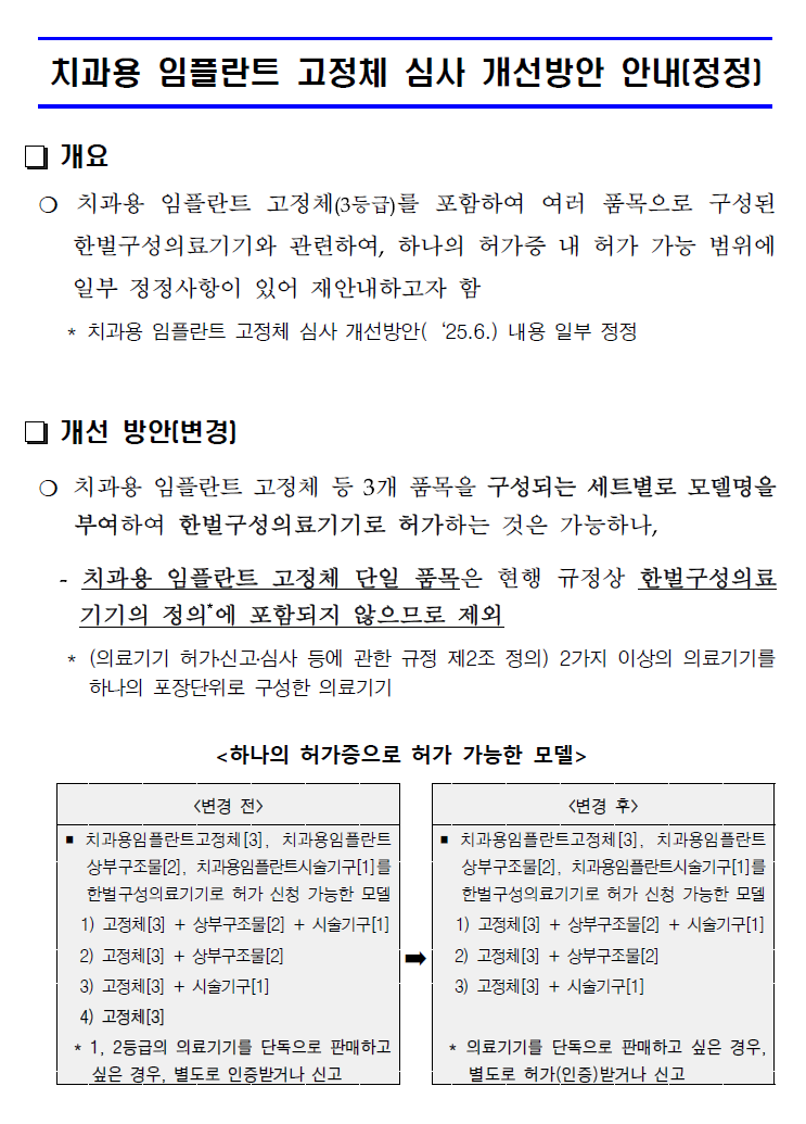 [식약처] 기술문서 심사(치과용임플란트고정체) 개선방안 정정
